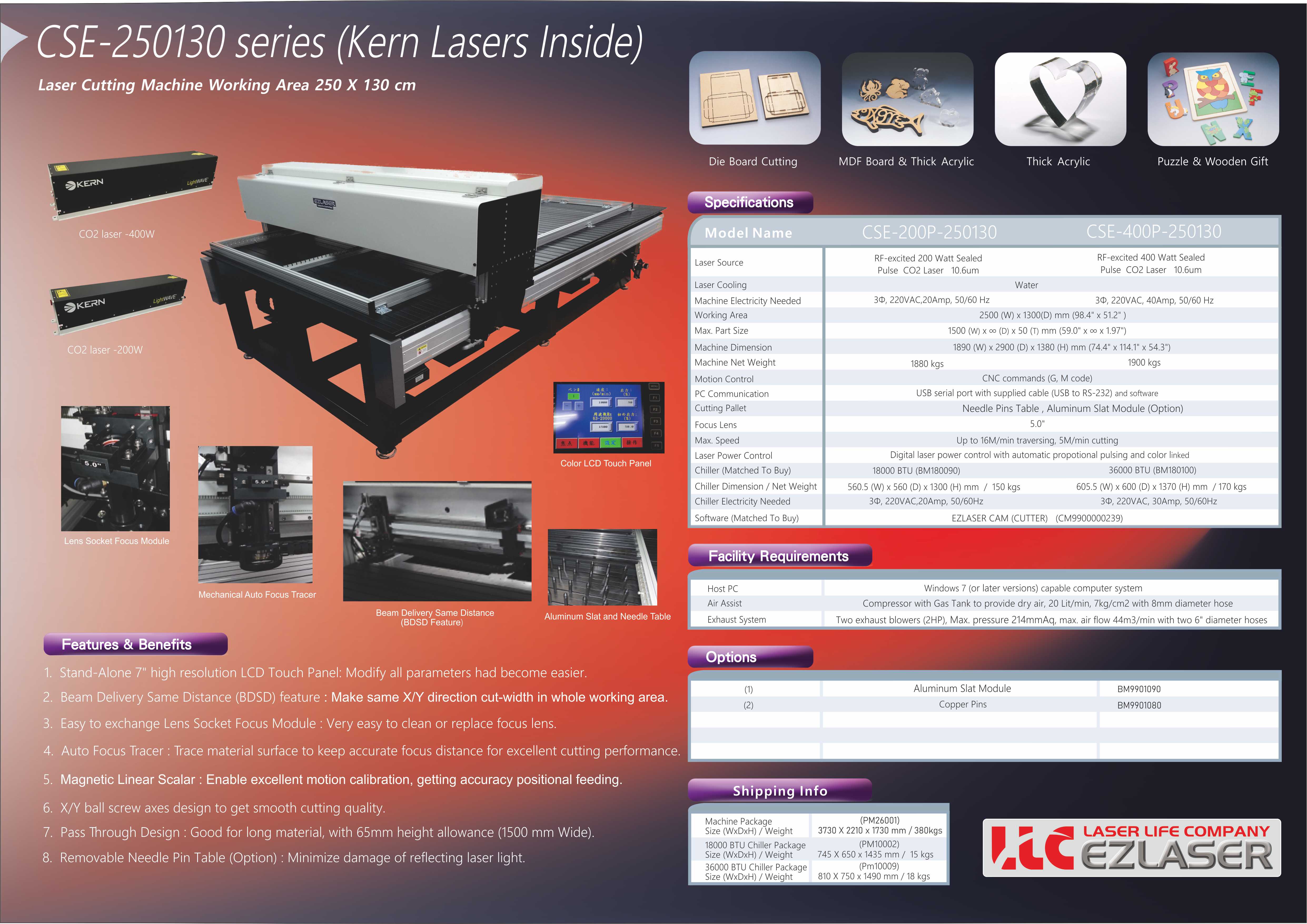 1. This CSB-060060 laser machine adopts a [Beam Fixed] / Moving Table configuration, making it the preferred model for cutting small-size Die-Board.