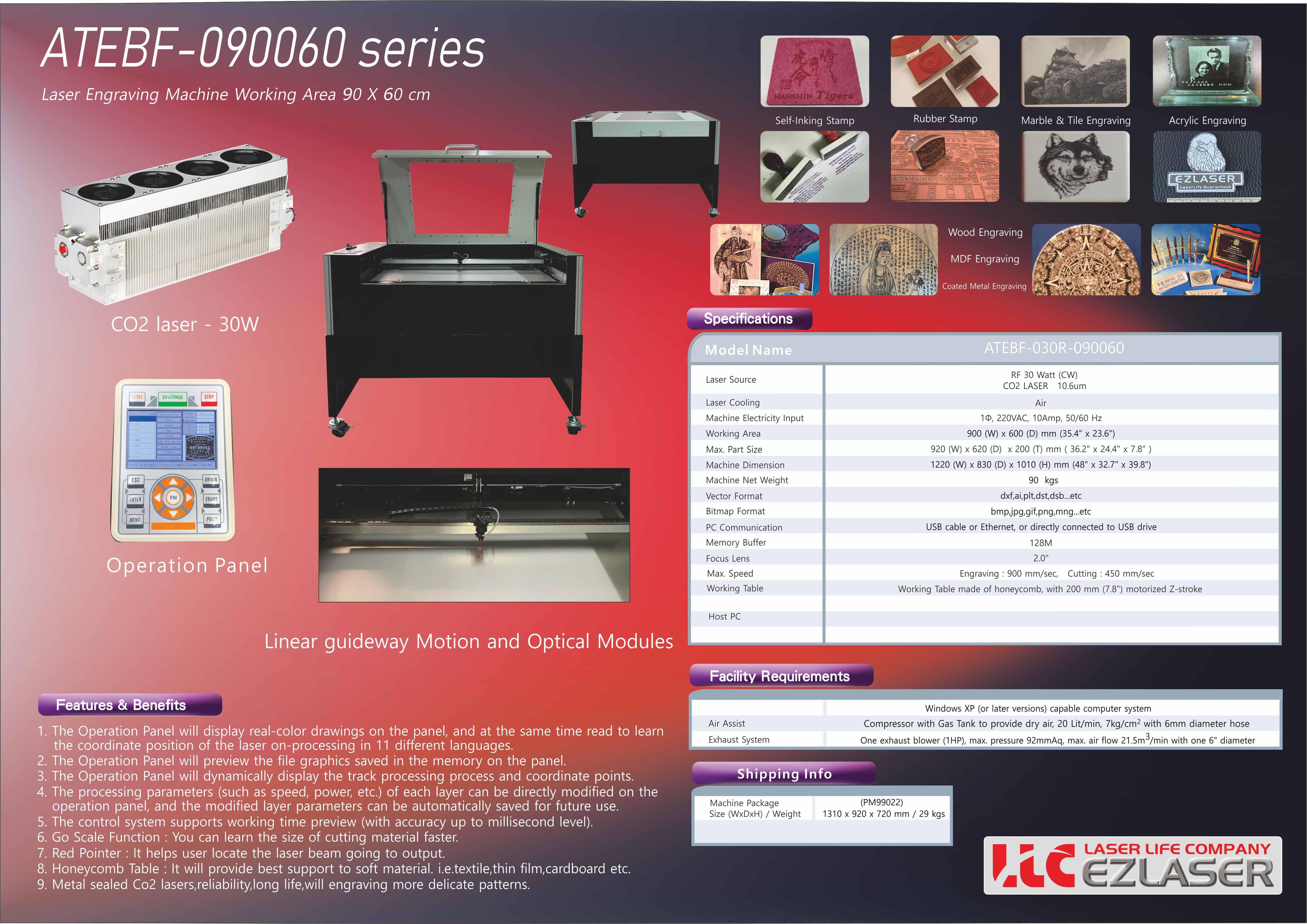 ATEBF-090060-30W CO2 CO2 Laser Cutting and Engraving System