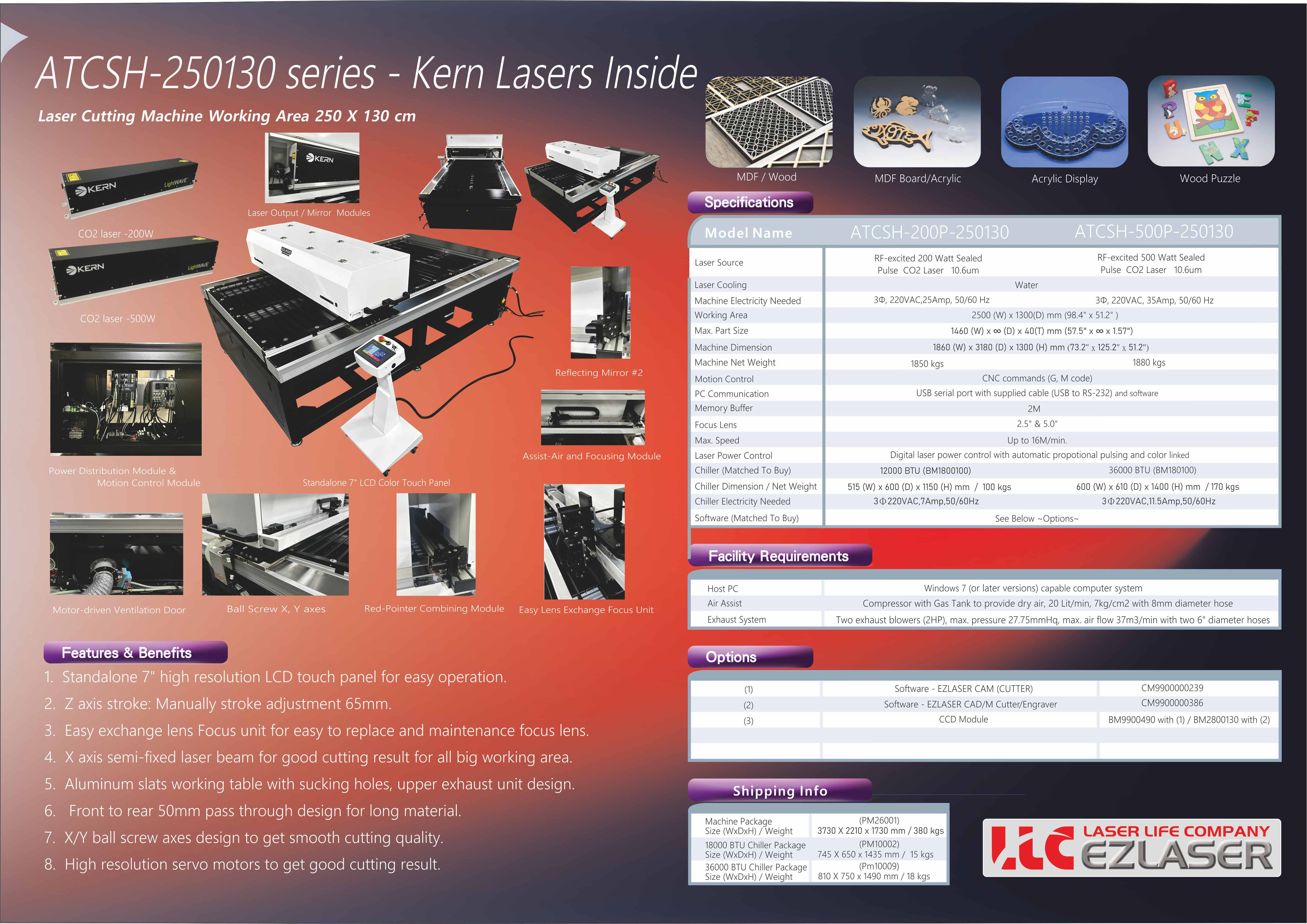 1. 龍門式半馳光設計, 光點差異小。 加工範圍 : 250 x 130 cm 。